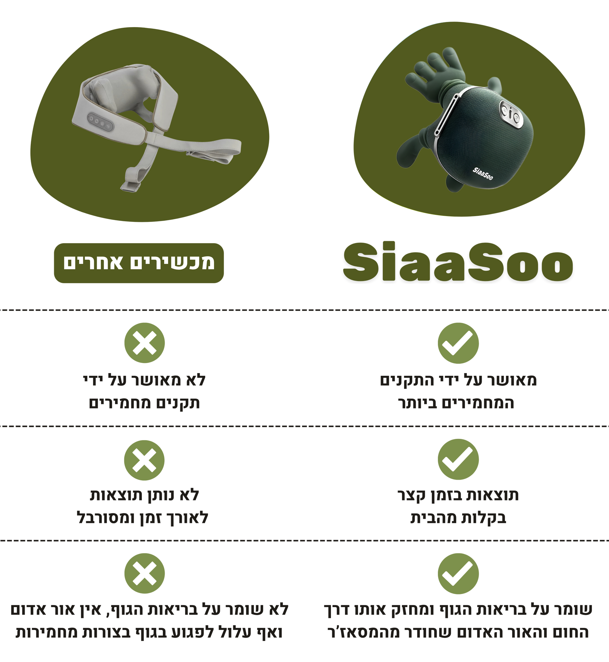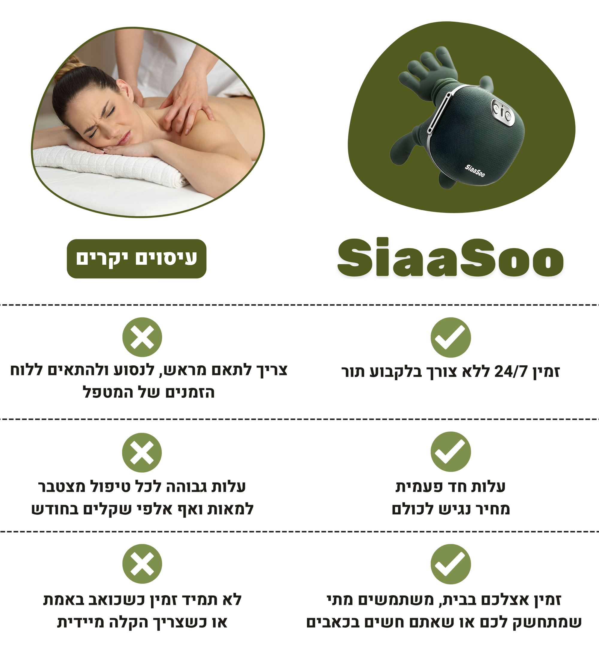 המסאז'ר של SiaaSoo נותן לך פתרון זמין, נוח ויעיל בכל רגע.